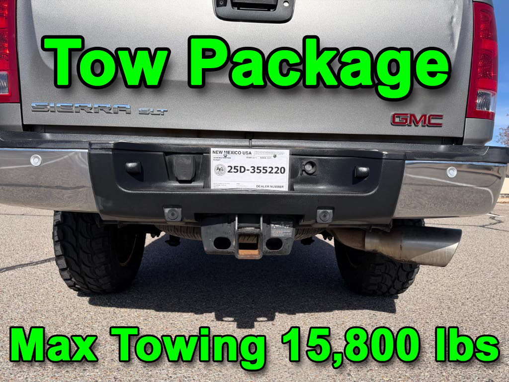 OMG! It’s finally here! Take a look at this lifted, rugged looking 2012 GMC Sierra SLT Diesel 4X4 Crew Cab that seats 5 very comfortably and with so many luxury features, you will think you are driving a Denali. It’s ready to take you and your family deep into the Jemez for that weekend get-away or out into the middle of nowhere hunting elk.
